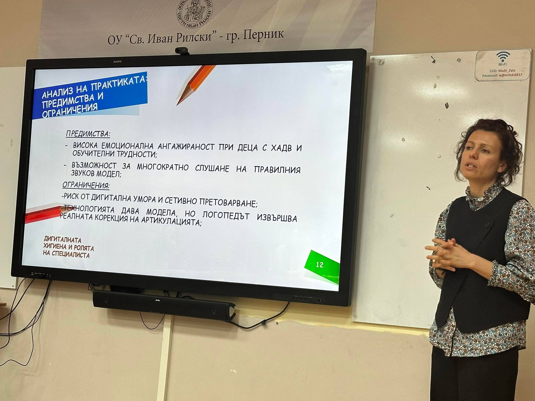 На 11 март 2026 г. в ОУ „Св. Иван Рилски“ – гр. Перник се проведе Областният дискусионен форум на тема „Различни техники в логопедичната практика – анализ на предимствата и ограниченията“, организиран от Регионалния център за подкрепа на процеса на приобщаващото образование – област Перник.